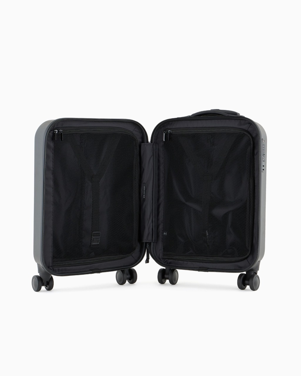 Mala trolley confeccionada em material resistente, com logo tom sobre tom. Conta com alça telescópica, cintas internas, fechamento por zíper e tecnologia TSA para maior segurança.