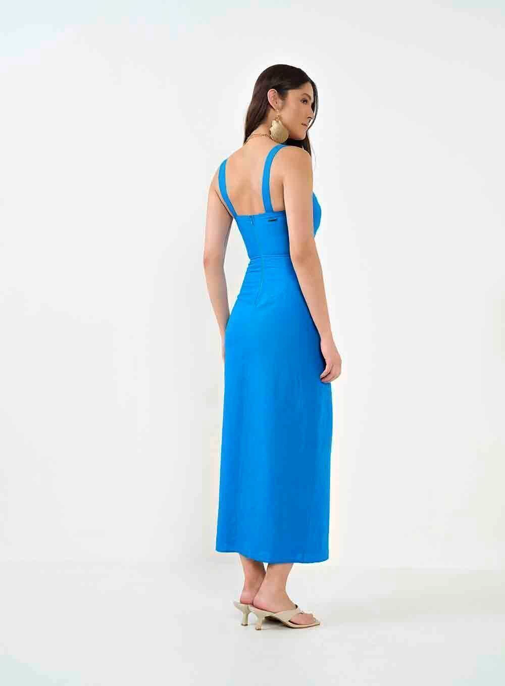 Vestido Midi Duplo Nó Slim - Gingado Alto Verão 26 O Vestido Midi Duplo Nó Slim - Gingado Alto Verão 26 da COLCCI é a personificação da intensidade e do estilo ousado que definem a coleção 'Gingado'. Com uma Cor azul vibrante e elétrica, ele irradia a energia contagiante do Alto Verão e celebra a brasilidade da moda, prometendo um visual marcante e cheio de atitude.Confeccionado em um Tecido nobre e inovador, o corpo é composto por 64% Viscose e 36% Linho, proporcionando um toque macio, excelente respirabilidade e um caimento fluido e confortável, ideal para os dias quentes. O Forro, 100% Viscose, garante conforto adicional e uma sensação agradável na pele, permitindo total liberdade de movimento.O Design apresenta uma modelagem midi slim que valoriza a silhueta de forma elegante e sensual. O decote quadrado com alças largas é o ponto de partida para um inovador detalhe de duplo nó no busto, que cria recortes estratégicos na cintura, adicionando um toque de ousadia e contemporaneidade. A saia flui suavemente, com um corte reto que realça o movimento. Entre os Detalhes, os recortes e o duplo nó são os grandes diferenciais, transformando o vestido em uma peça única e cheia de personalidade. O fechamento traseiro com zíper invisível garante um acabamento impecável. Sua Funcionalidade reside na versatilidade para criar looks impactantes e cheios de personalidade, seja para eventos diurnos ou noturnos, sempre com a atitude e o frescor que a COLCCI propõe para o verão. DICAS TEAM COLCCI! Combine o Vestido Midi Duplo Nó Slim Gingado Alto Verão 26 com sandálias de salto fino em tons neutros para um look elegante e sensual, ideal para coquetéis ou jantares especiais.Aposte em acessórios maxi e artesanais, como brincos de conchas douradas ou colares statement (como na imagem), para realçar o mood natural e a brasilidade da coleção.Para um visual ainda mais inovador e marcante, experimente um penteado preso e óculos de sol statement, completando o look com confiança e estilo.Este vestido é perfeito para celebrar a moda brasileira com atitude, cor e movimento, destacando-se em qualquer cenário com confiança e bem-estar. Use Arrow Up and Arrow Down to select a turn, Enter to jump to it, and Escape to return to the chat.