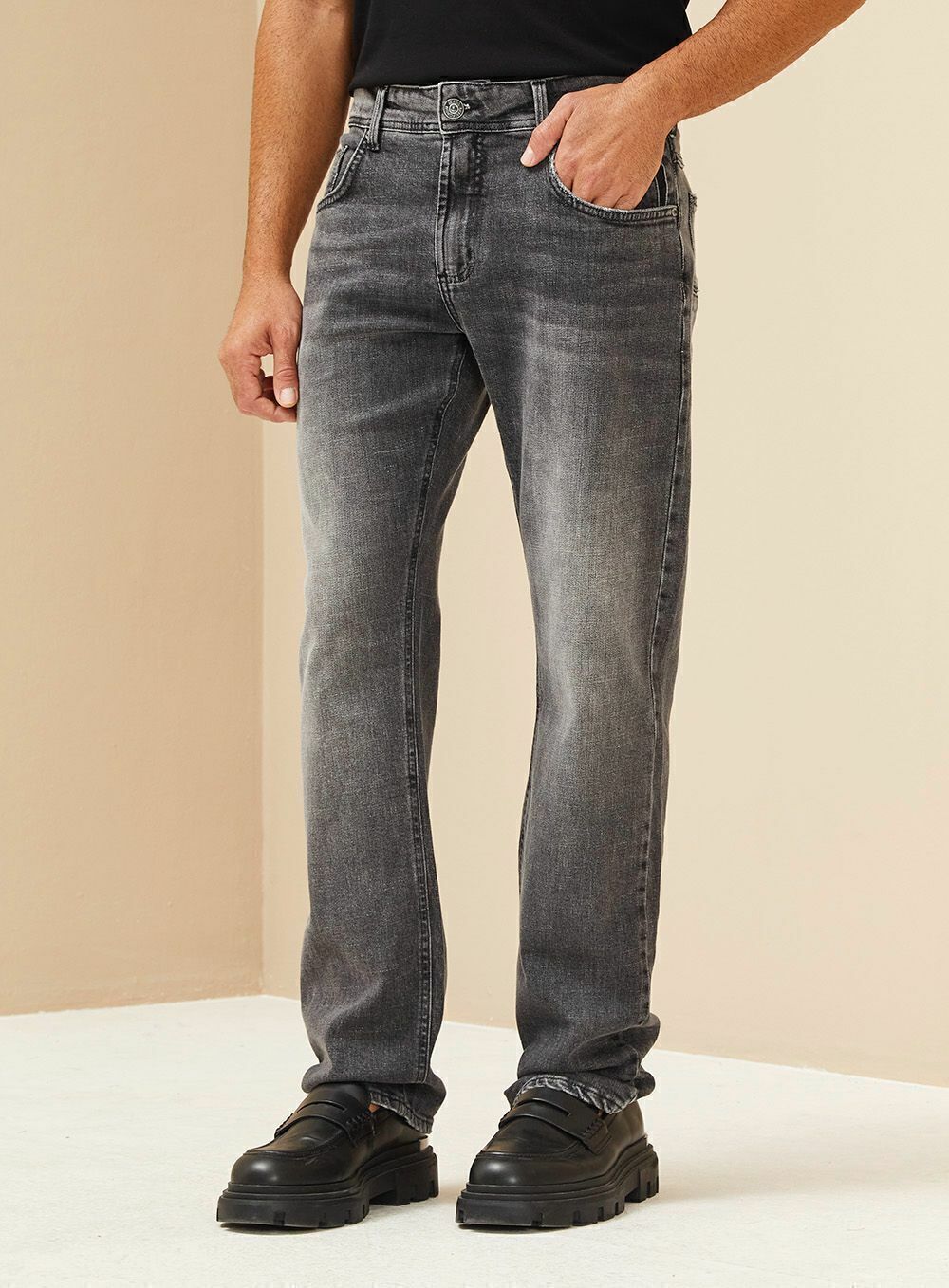 Design: Corte reto clássico, que oferece um caimento clean e elegante. Detalhes de lavagem estonada, com leves efeitos de desbotamento e marcações que conferem um visual moderno e autêntico. Design de 5 bolsos com acabamento refinado.