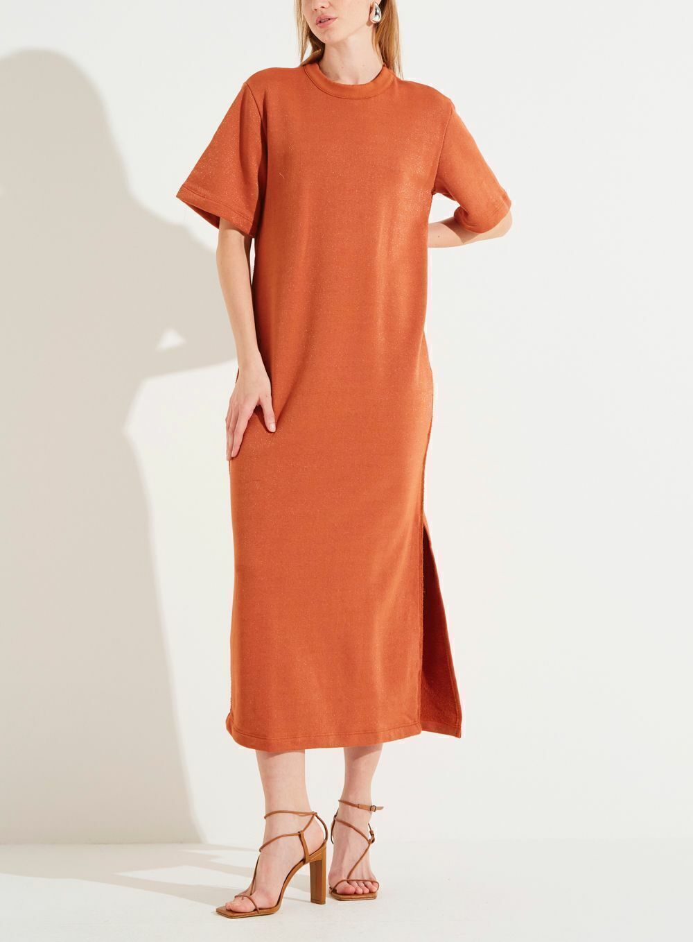 Peça/Look: Vestido Moletom Midi com Fenda Lateral