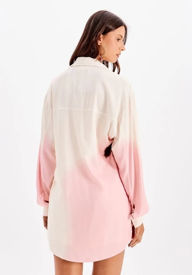 a camisa alongada estampada traz a essência tropical em um shape descomplicado. Com mangas longas, fechamento por botões e caimento descolado, ela transita entre produções descontraídas e clássicas. ideal para usar aberta com top ou como chemise para um styling autêntico.
