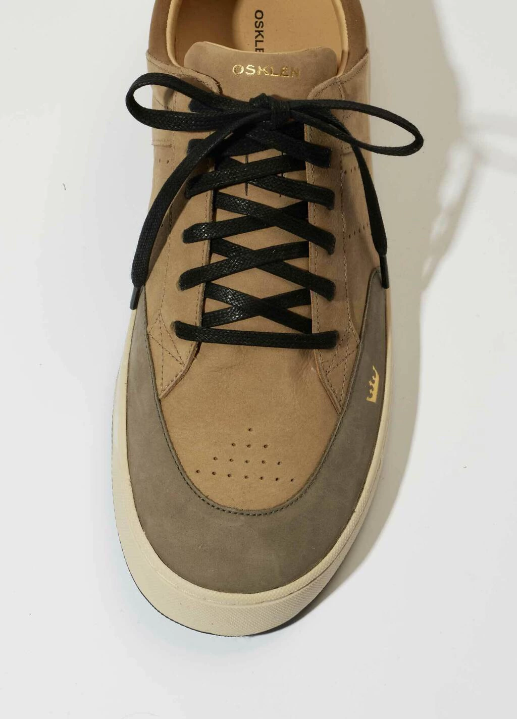 Tênis soho em couro bovino. modelo de amarração com cadarço de algodão. forro e palmilha em couro bovino. solado de borracha costurado ao cabedal com design exclusivo osklen, produzido com no mínimo 10% de material reciclado. produto re-design waste.