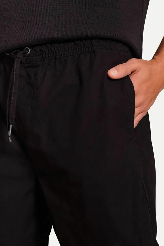 Simples Reserva Bermuda De Sarja Masculina Com Elastico 0087155 Preto