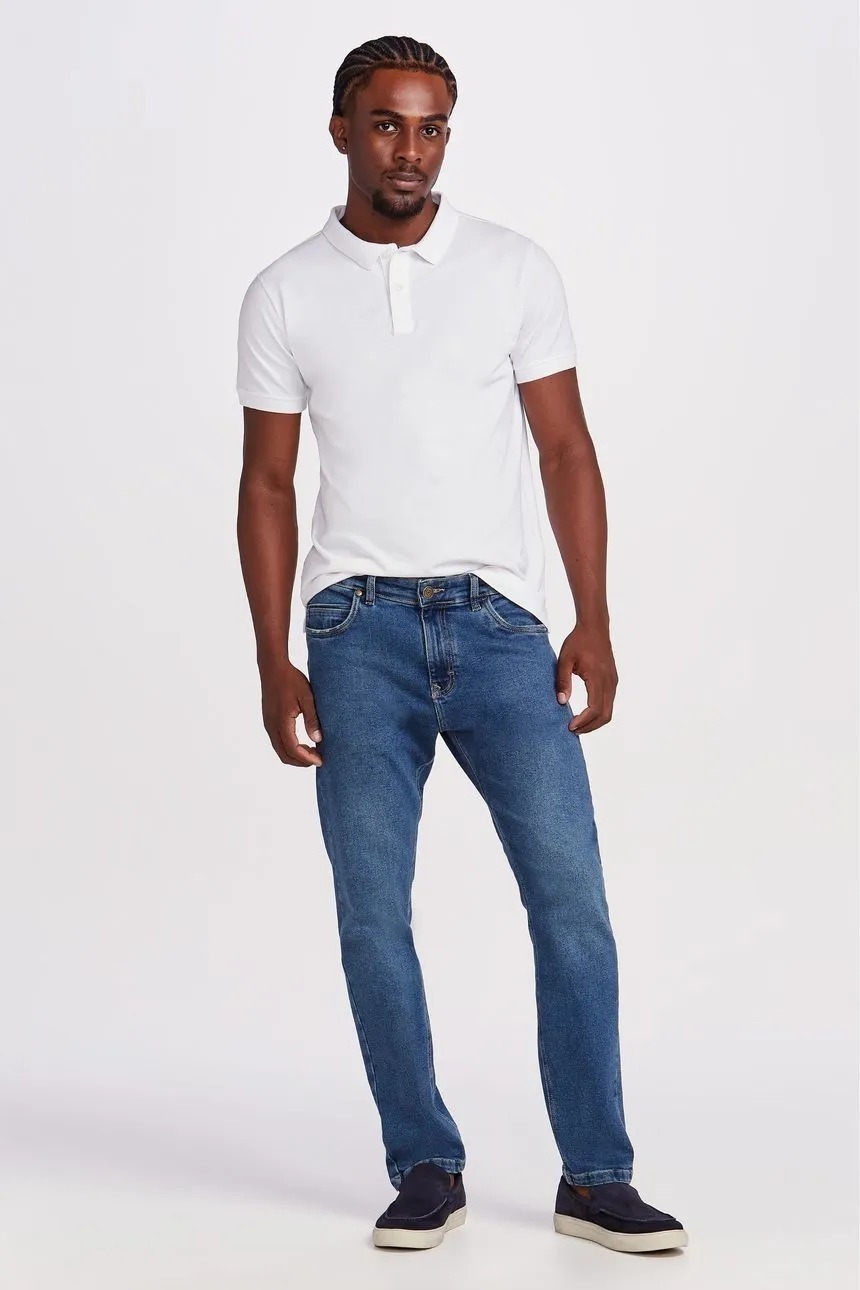 A Polo Lhama Malha Piquet Branca manga curta tem aberturas laterais na barra e lhama bordada no peito na mesma cor.